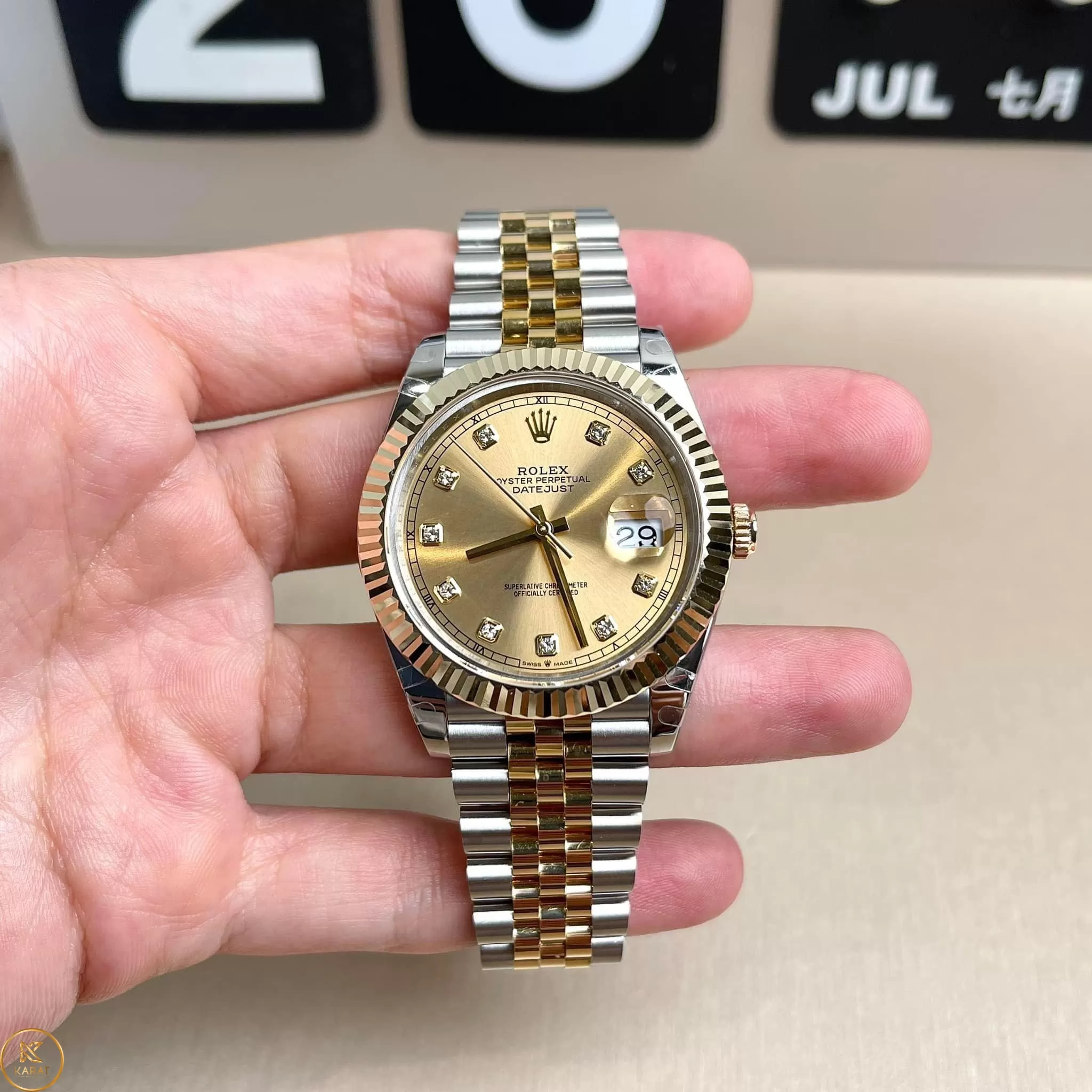 Đồng Hồ Rolex Like Auth Datejust 41 126333 Mặt Số Champagne Nạm Kim Cương