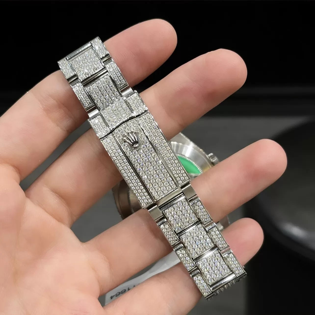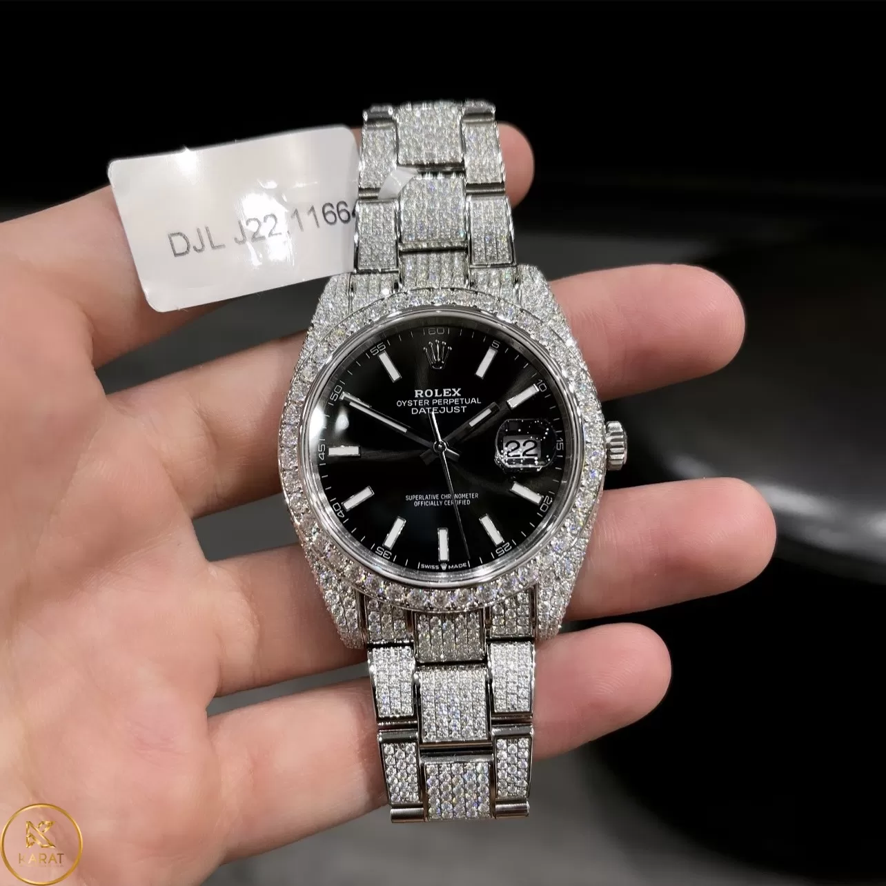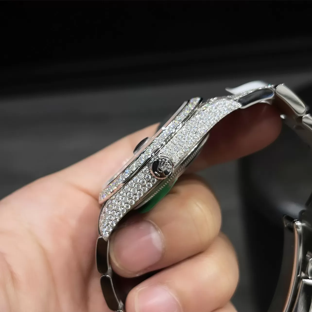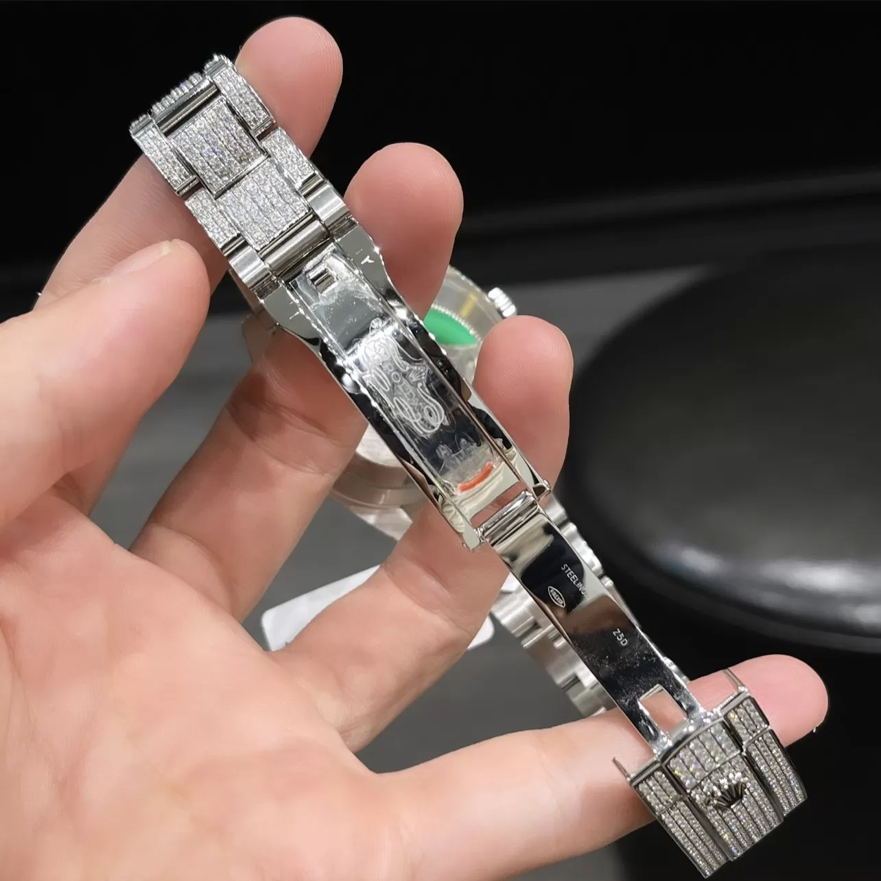 Chất liệu đồng hồ Rolex Datejust mặt số đen độ Full Kim Cương Moissanite tốt