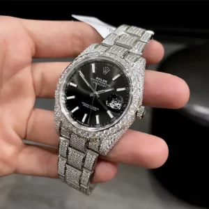 Mặt số đồng hồ Rolex Datejust Mặt Số Đen Full Kim Cương Moissanite ấn tượng