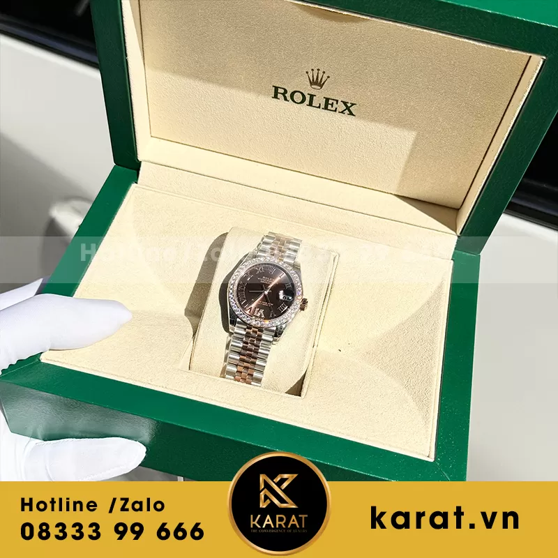 Karat.vn – Chuyên phân phối Đồng hồ rolex nữ demi chocolate dial độ kim moissanite rep 1 : 1