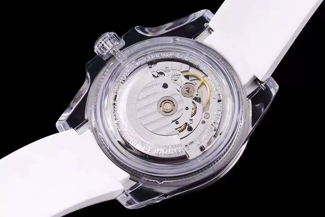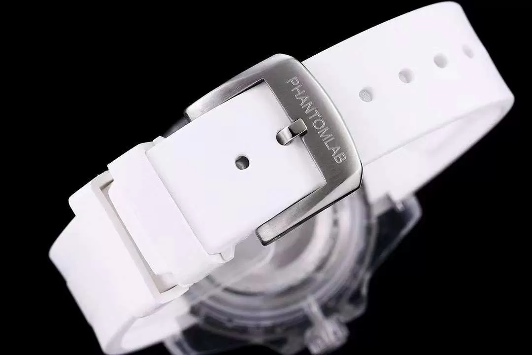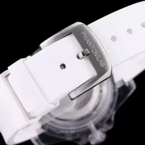 – Dây đồng hồ Rolex Phantomlab fake cao cấp bằng cao su thiên nhiên mềm mại, co giãn tốt. Dây màu trắng tinh tế hài hòa với tổng thể thiết kế.