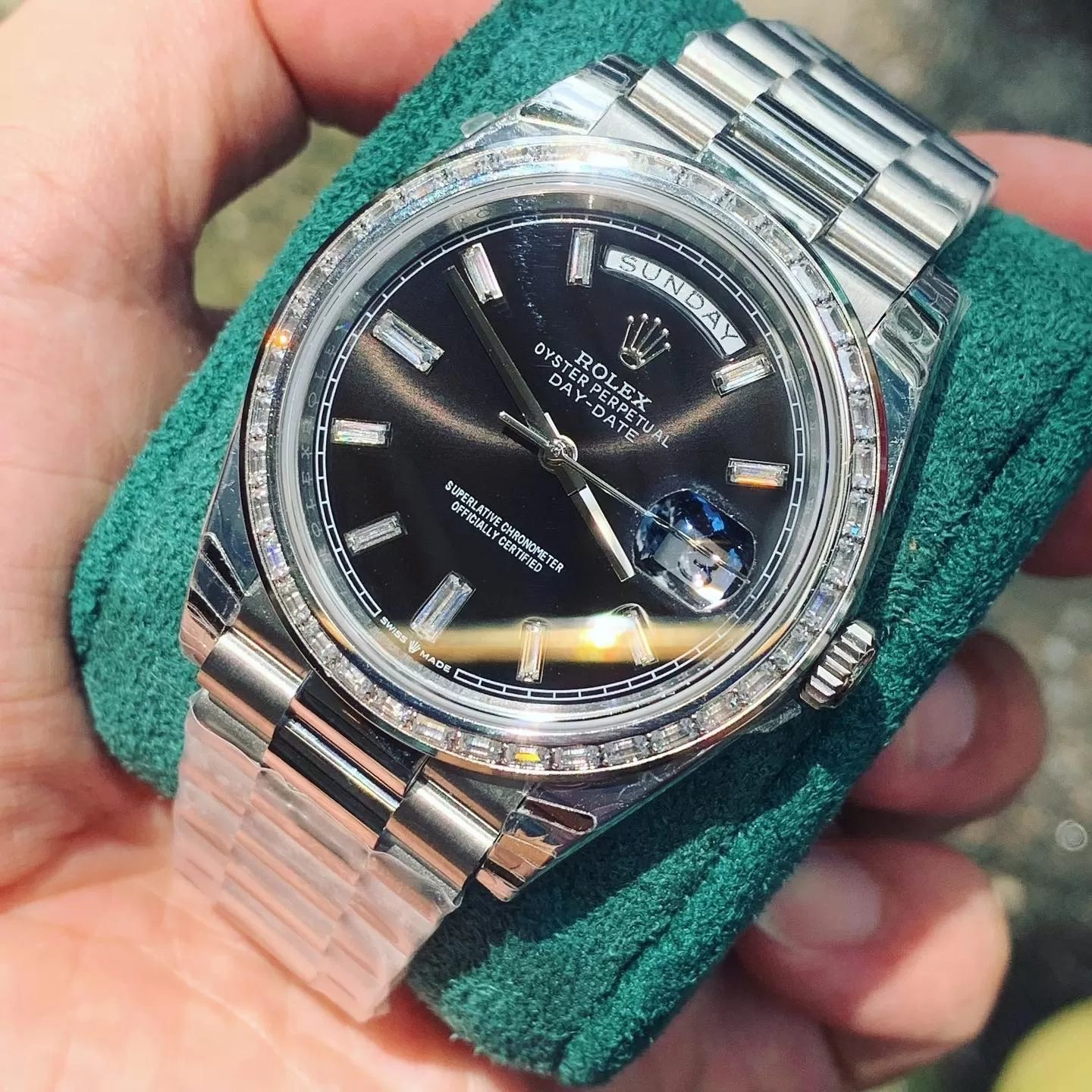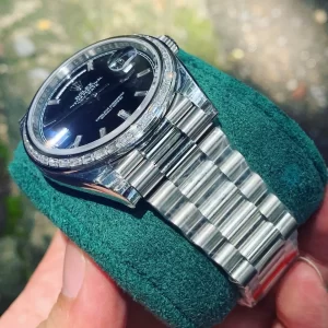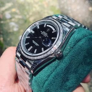 Đồng Hồ Rolex Replica 1:1 Day-Date 40 228349RBR Mặt Số Đen Nạm Kim Cương