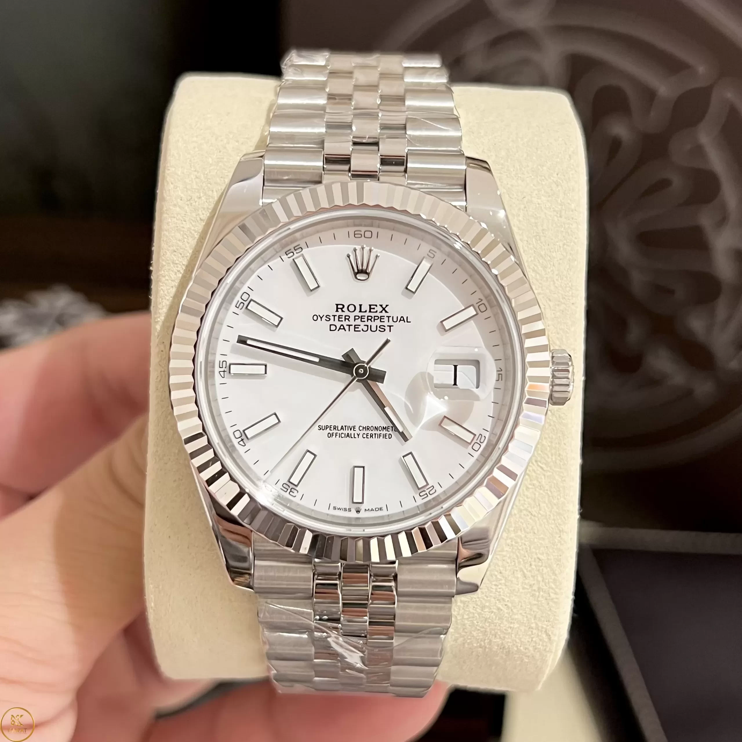 Đồng Hồ Rolex Siêu Cấp 1:1 Datejust 41 126334 Mặt Số Trắng Cọc Số Dạ Quang
