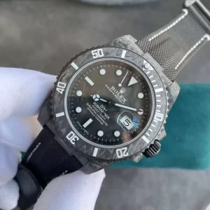Đồng hồ Rolex Submanriner Date Black DIW Carbon Fiber Fake này chống chịu tác động môi trường tốt. Toàn bộ phần vỏ khung hoàn thiện đạt tiêu chuẩn cao. Bên cạnh mặt số, núm chỉnh giờ giống chiếc bánh xe thu nhỏ cực đẹp mắt. Dây đeo bằng chất liệu dù màu đen sang chảnh mang lại cảm giác thoải mái cho người đeo.