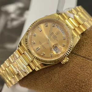 Đồng hồ Rolex Super Fake 1:1 Day-Date 36 128238 Mặt Số Vàng Champagne Cọc Số Nạm Kim Cương – đẳng cấp quý tộc