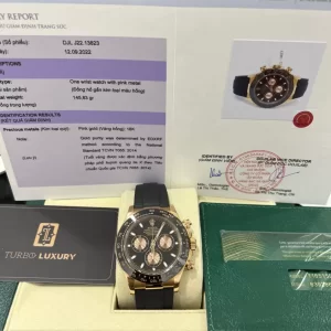 Mạnh mẽ, nam tính, đẳng cấp là những gì bạn sẽ cảm nhận được khi đeo đồng hồ Rolex Replica 1:1 này trên tay. Bộ khung vỏ làm từ vàng hồng 18k đắt đỏ, sang trọng. Vành bezel tràn viền phủ gốm Ceramic độ bền gấp 4 lần thép không gỉ.