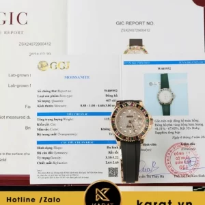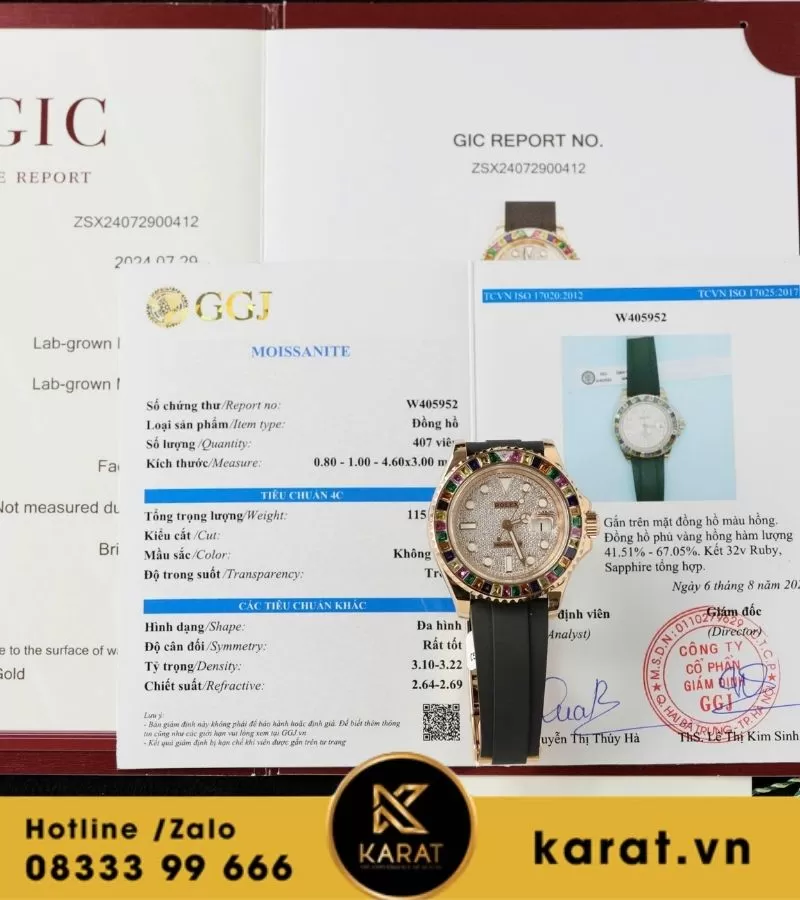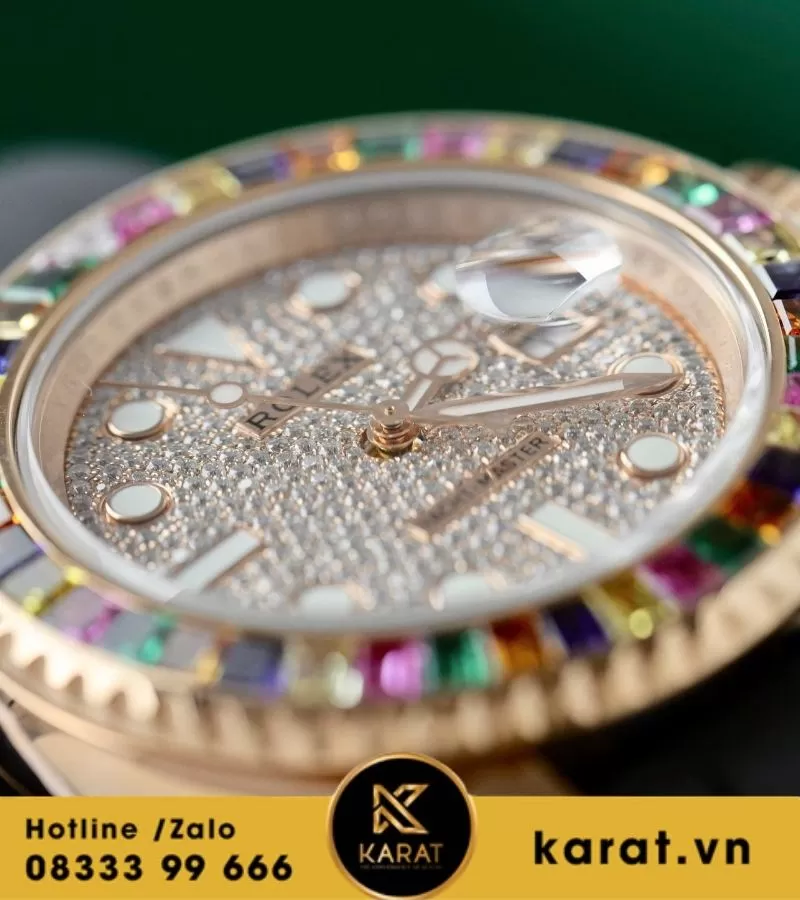 Chất liệu vỏ: Bọc vàng hồng 18K, đính Kim cương Moissanite, Ruby và Sapphire