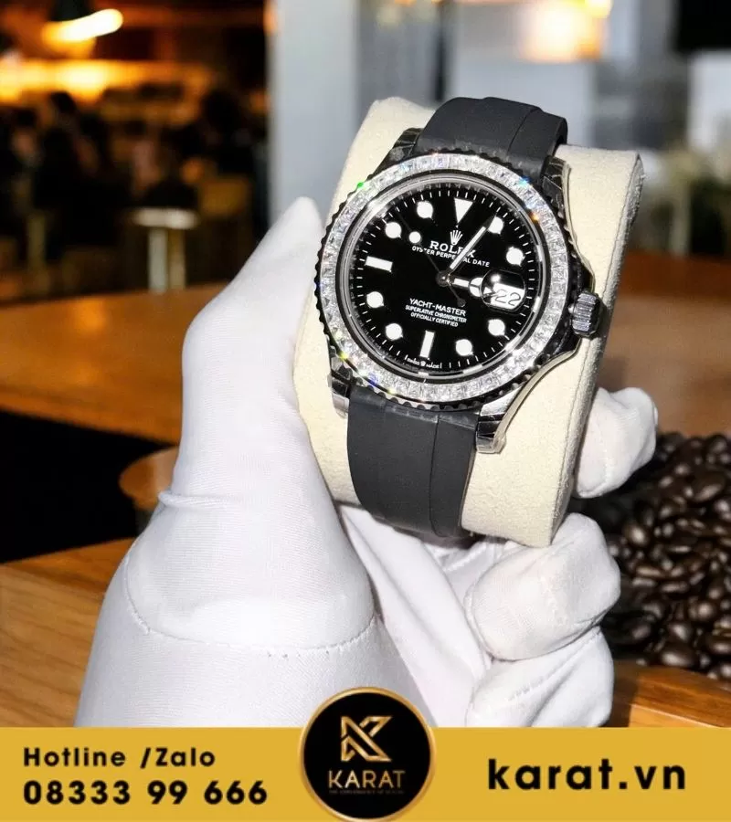 Đồng hồ Rolex Yatch master độ viền moissanite baguette