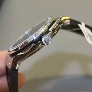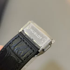 Núm chỉnh giờ bên cạnh mặt số nổi logo Hublot. Liên kết với dây đeo bằng cao su cao cấp giả vân cá sấu màu đen ấn tượng. Khoá đồng hồ bằng Titanium dạng gập thông minh. Khả năng chống nước đạt 50m nên chúng ta yên tâm đi dưới mưa hay tắm gội.