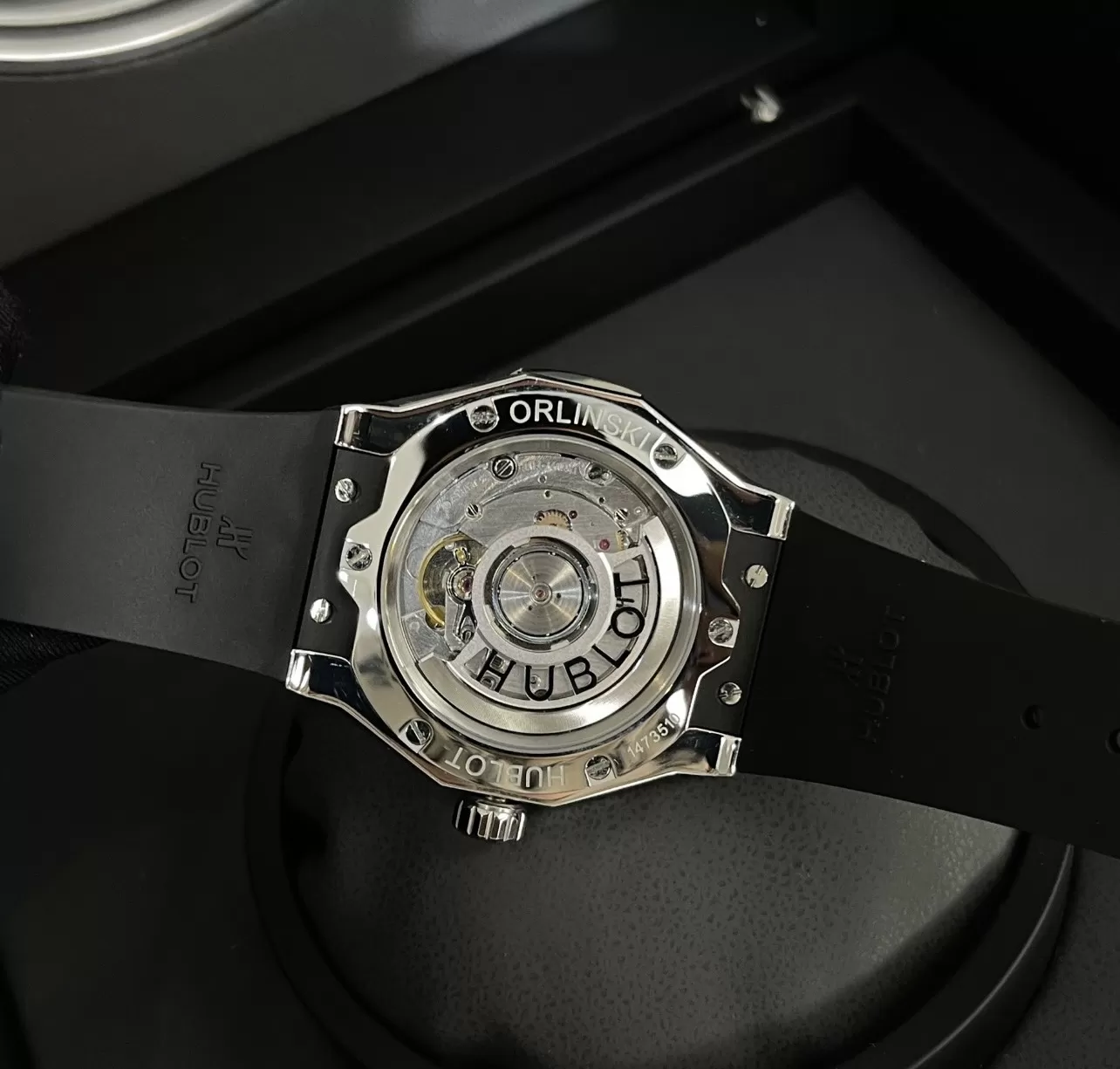 Ấn tượng hơn cả phải kể đến mặt số. Model Hublot Classic Fusion Orlinski Titatinum trang bị mặt số game màu đen quyền lực, sang trọng và huyền bí. Ôn lớn này cực kỳ thông minh khi sử dụng mặt số màu đen dạng cắt lớp để hoàn thiện sản phẩm của mình.