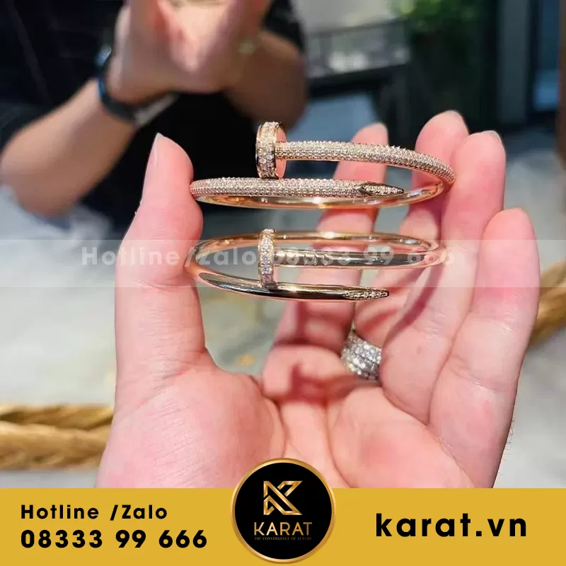 Lắc Tay Cartier Juste Un Clou Chế Tác Vàng Hồng 18k Đầu Đinh điểm kim cương
