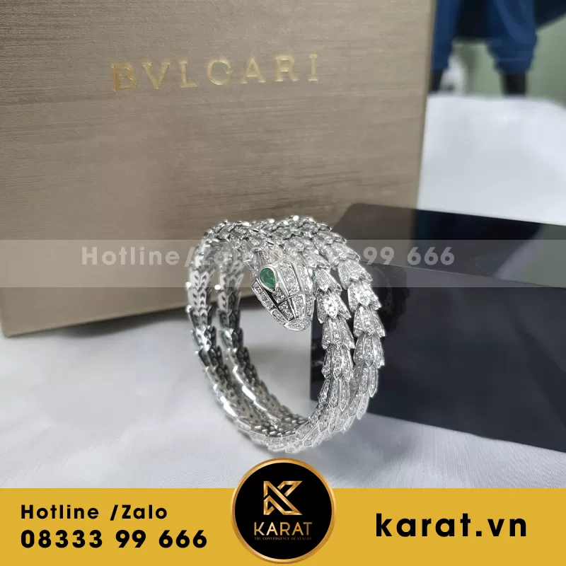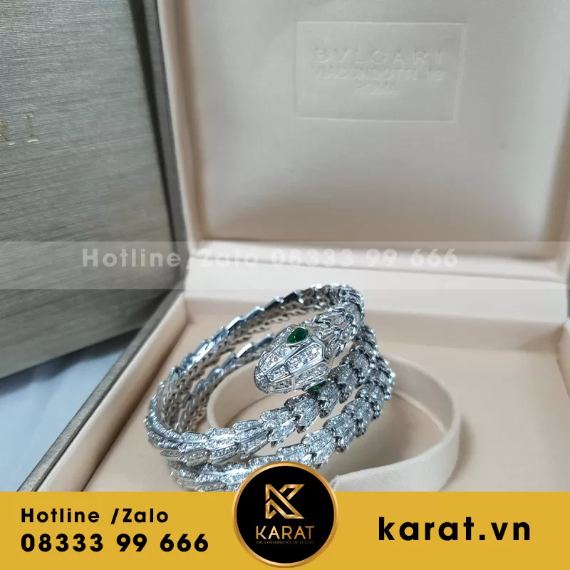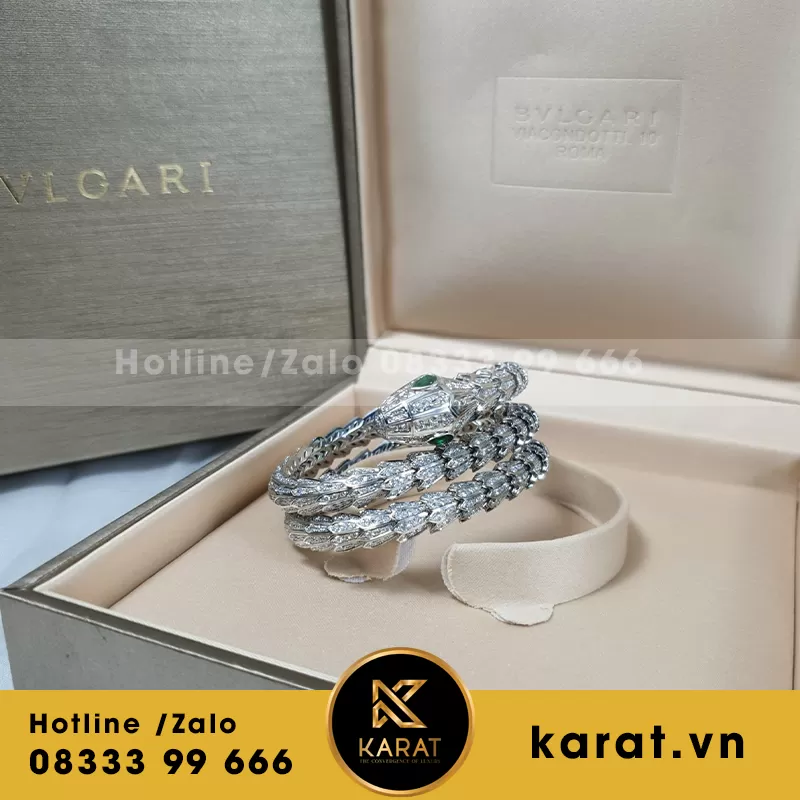 Lắc tay hình rắn Bvlgari Vàng trắng 18k, kim cương thiên nhiên