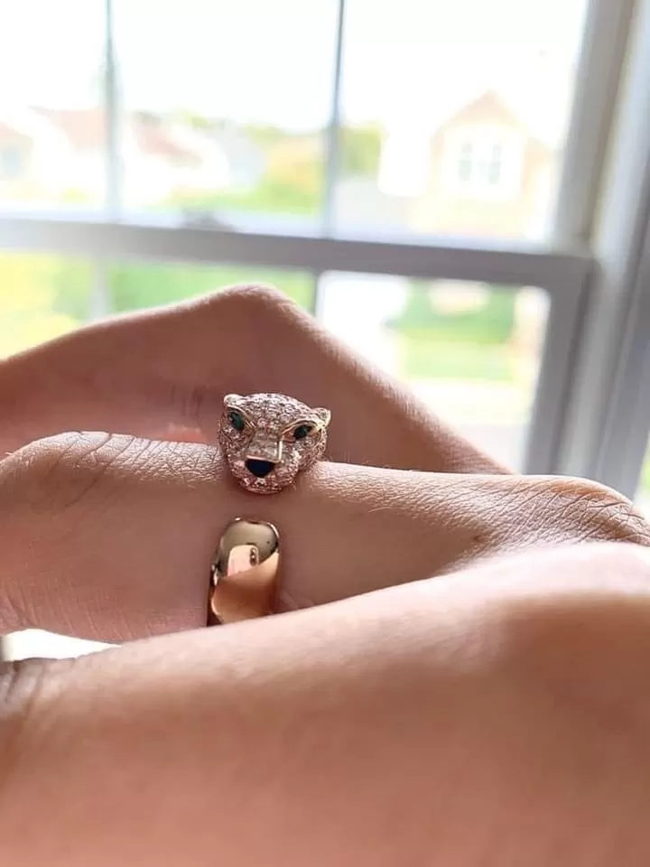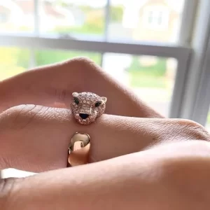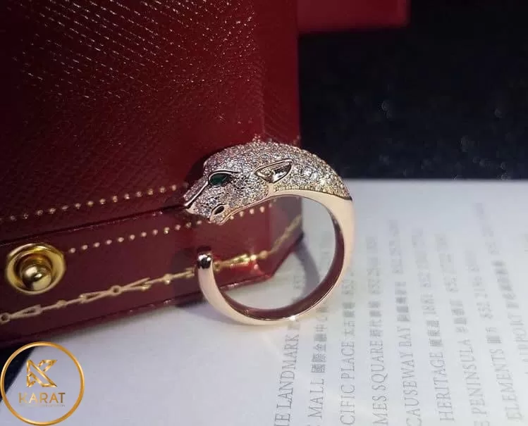 Nhẫn Cartier đầu báo 3D Chế Tác Vàng Hồng Đính Kim Cương