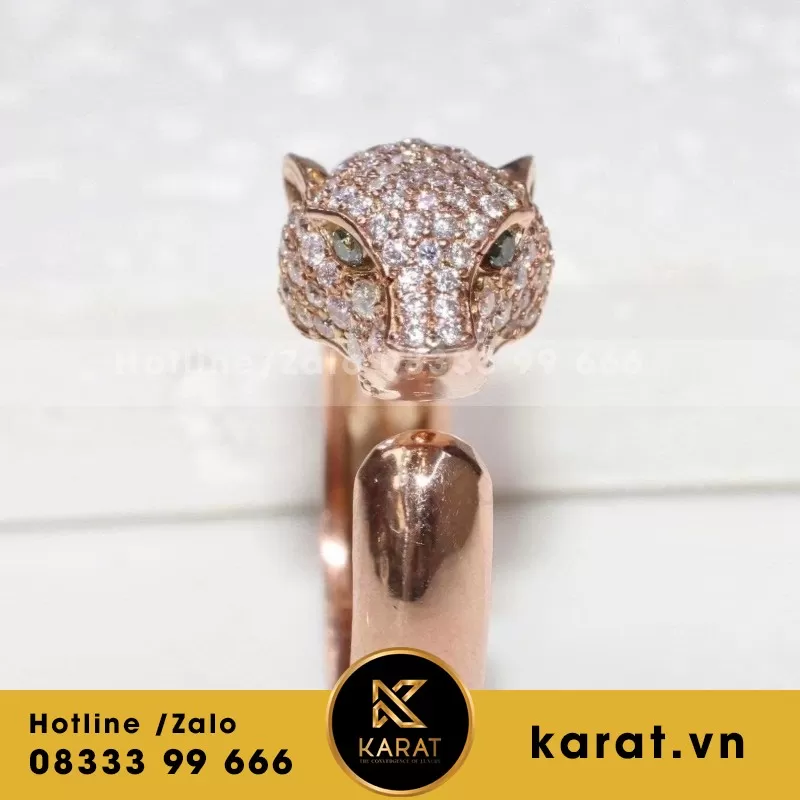 Nhẫn Cartier đầu báo vàng trắng 18k full kim