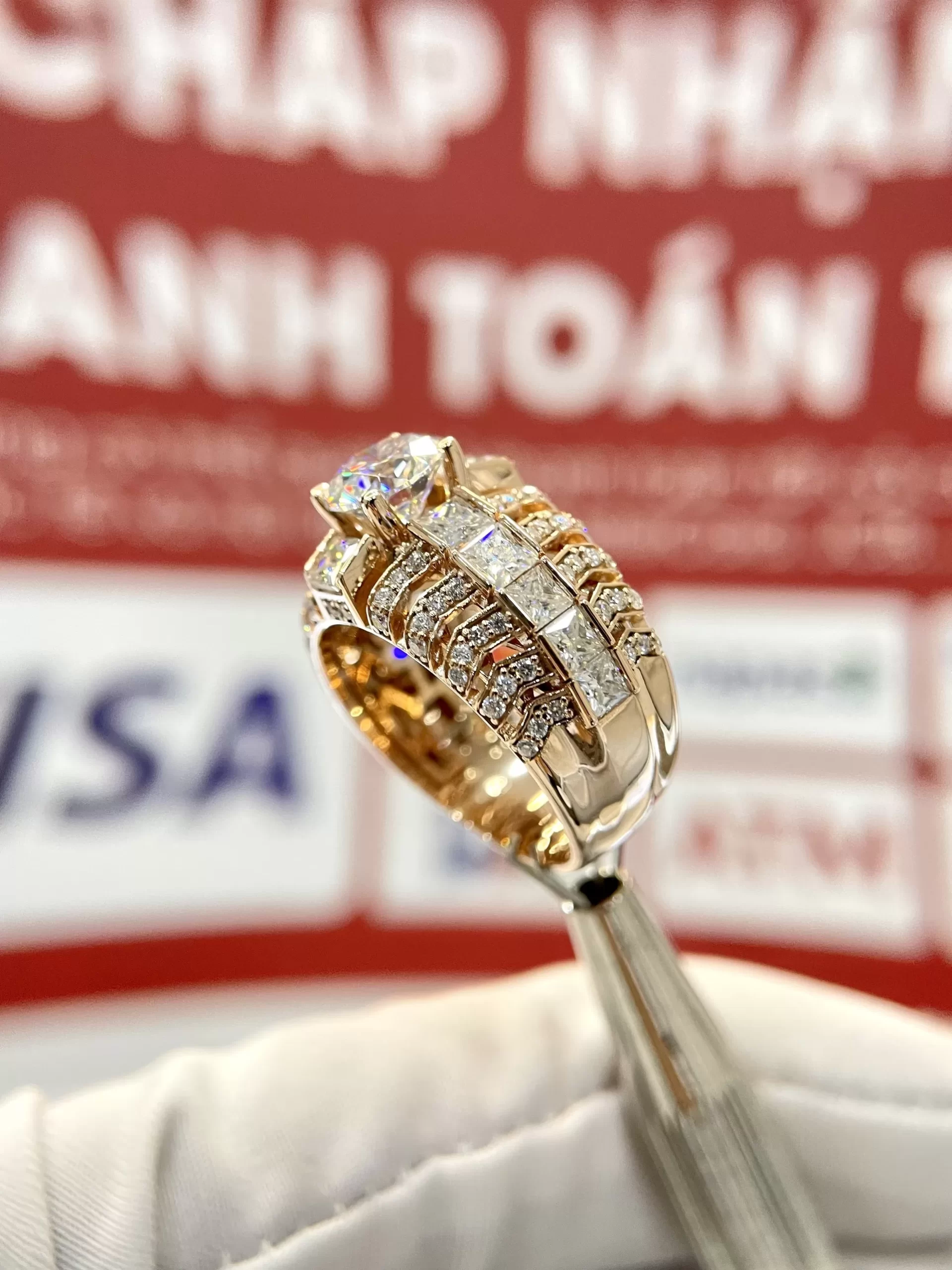 Nhẫn Nam Chế Tác Vàng Hồng 18k Kim cương Thiên Nhiên