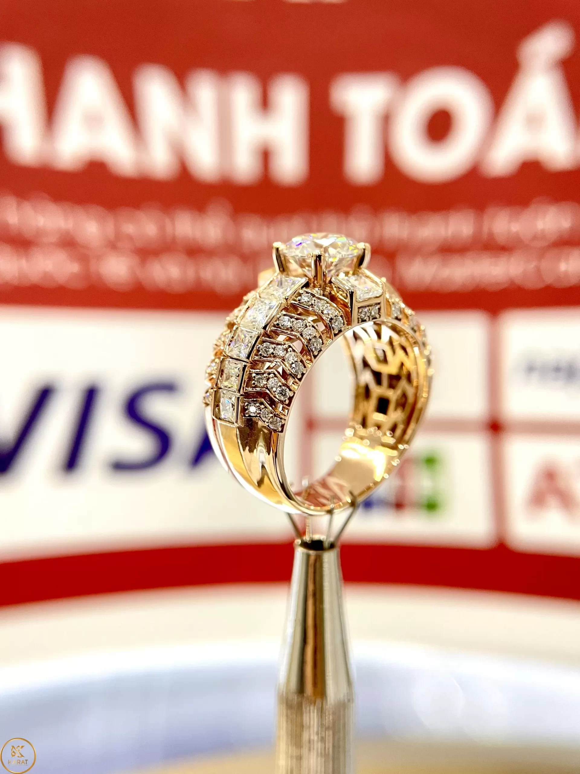 Nhẫn Nữ Chế Tác Vàng Hồng 18k Kim Cương Thiên Nhiên