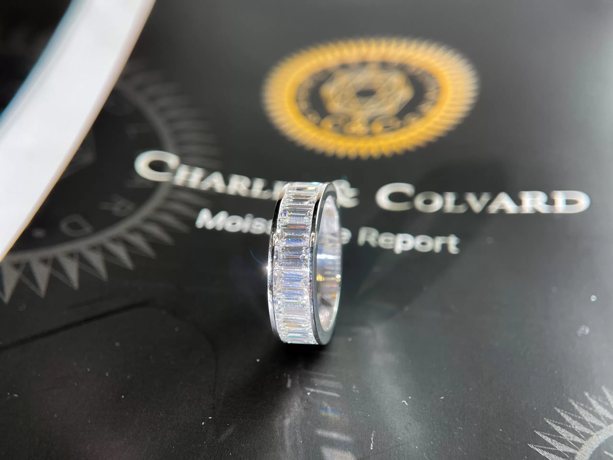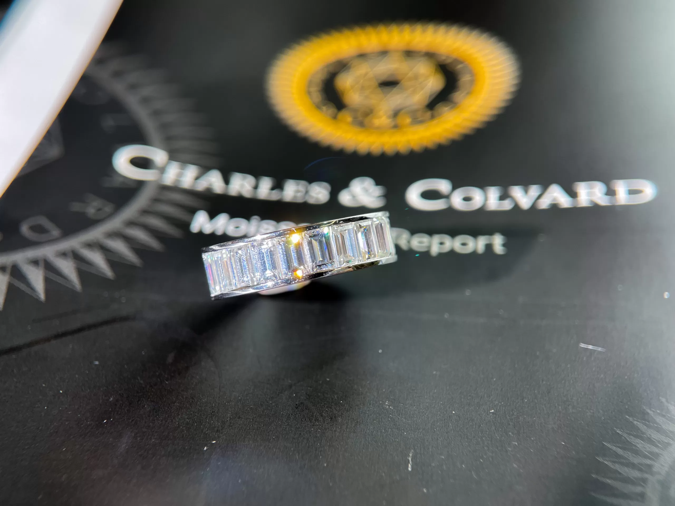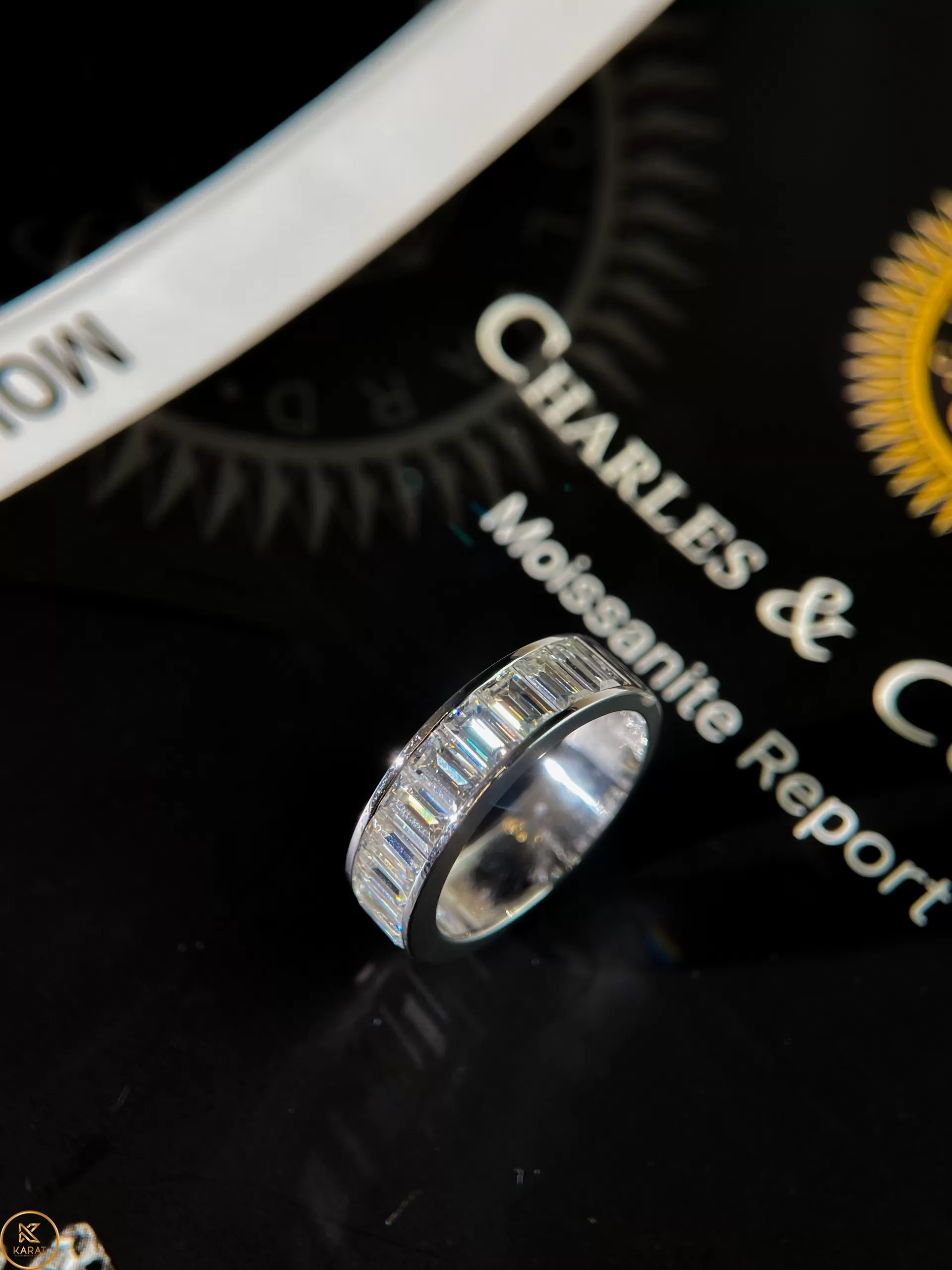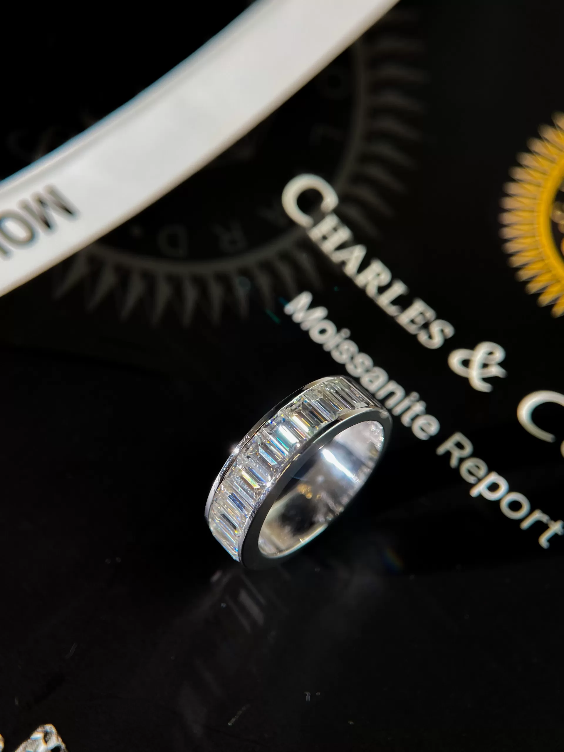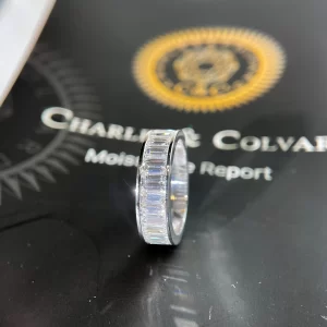 Nhẫn nam Chế tác Vàng trắng 18k, kim cương baguette thiên nhiên