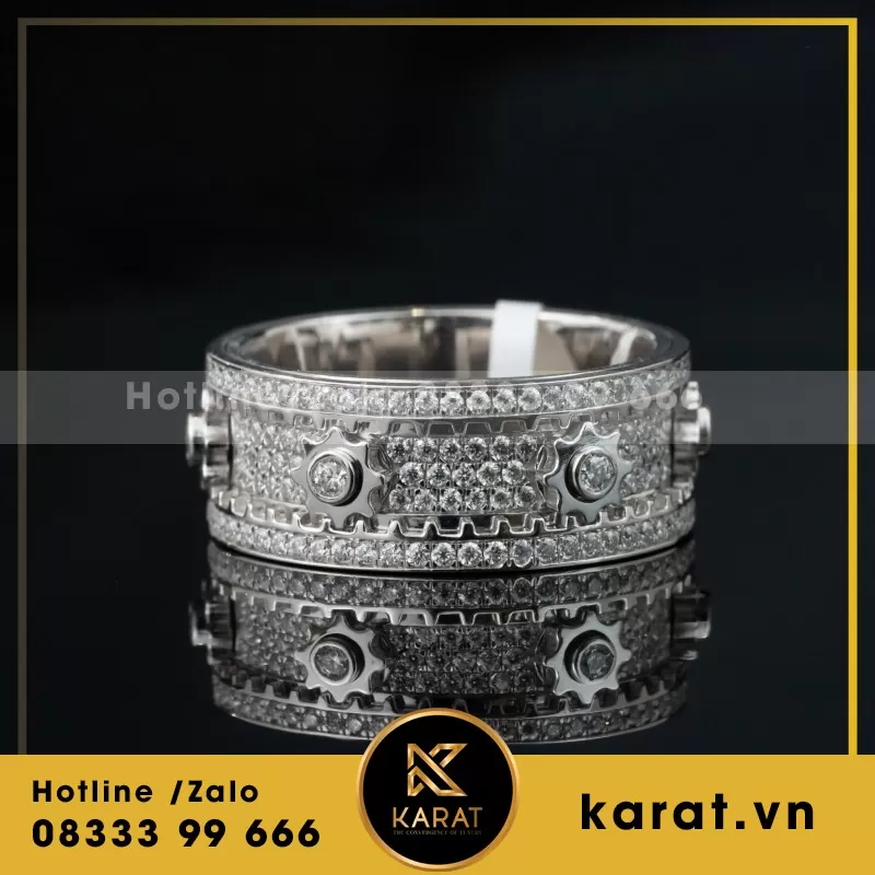 Nhẫn Cartier đầu báo 3D Chế Tác Vàng Trắng