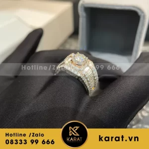 Nhẫn Cartier đầu báo vàng trắng 18k full kim