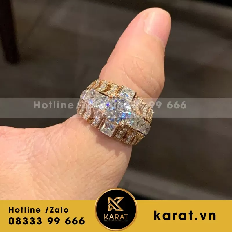 Nhẫn Cartier đầu báo 3D Chế Tác Vàng Trắng