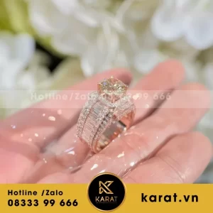 Nhẫn Cartier đầu báo vàng trắng 18k full kim