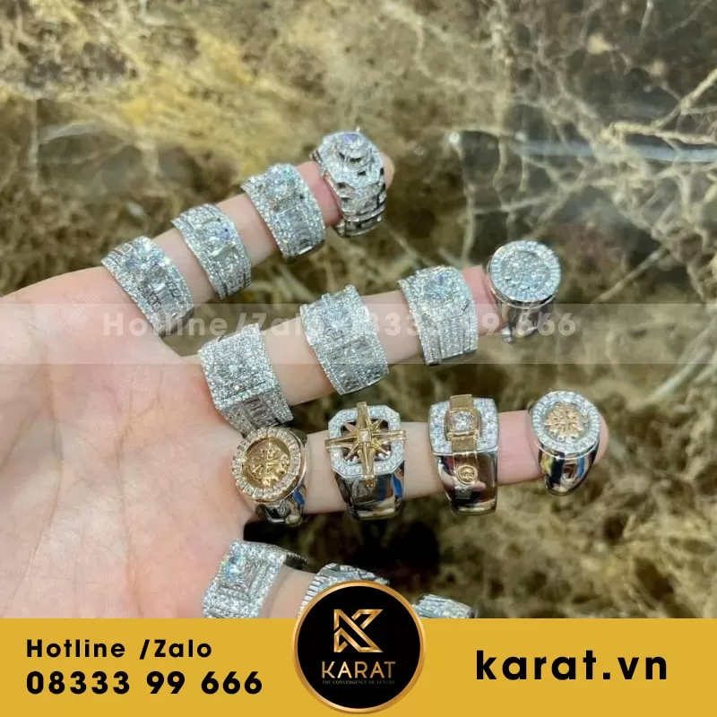 Nhẫn Cartier đầu báo vàng trắng 18k full kim