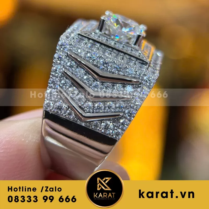 Nhẫn Đinh Cartier Chế tác Vàng Trắng 18k, Kim Cương Thiên Nhiên