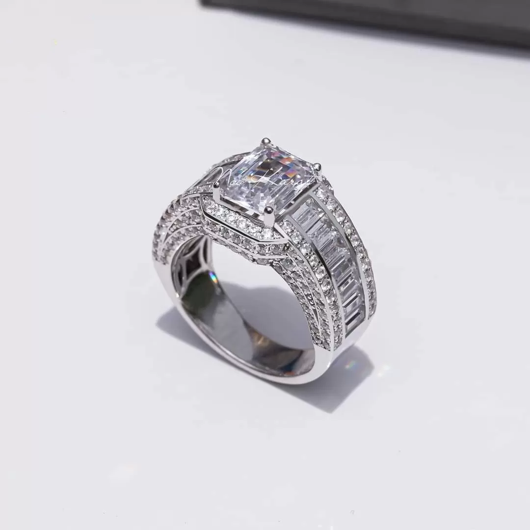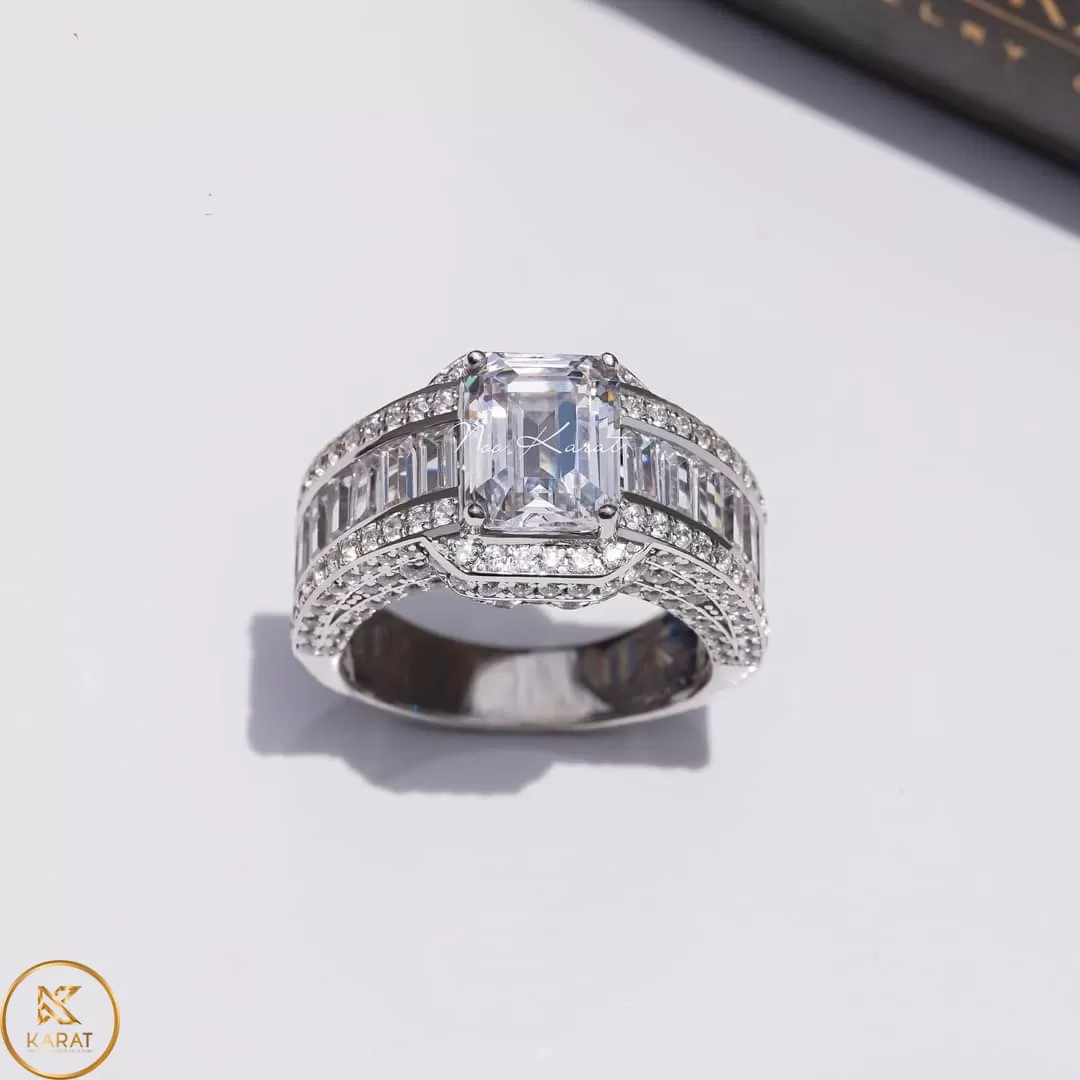 Nhẫn Nam Vàng Trắng 10k 14k 18k Kim Cương Moissanite