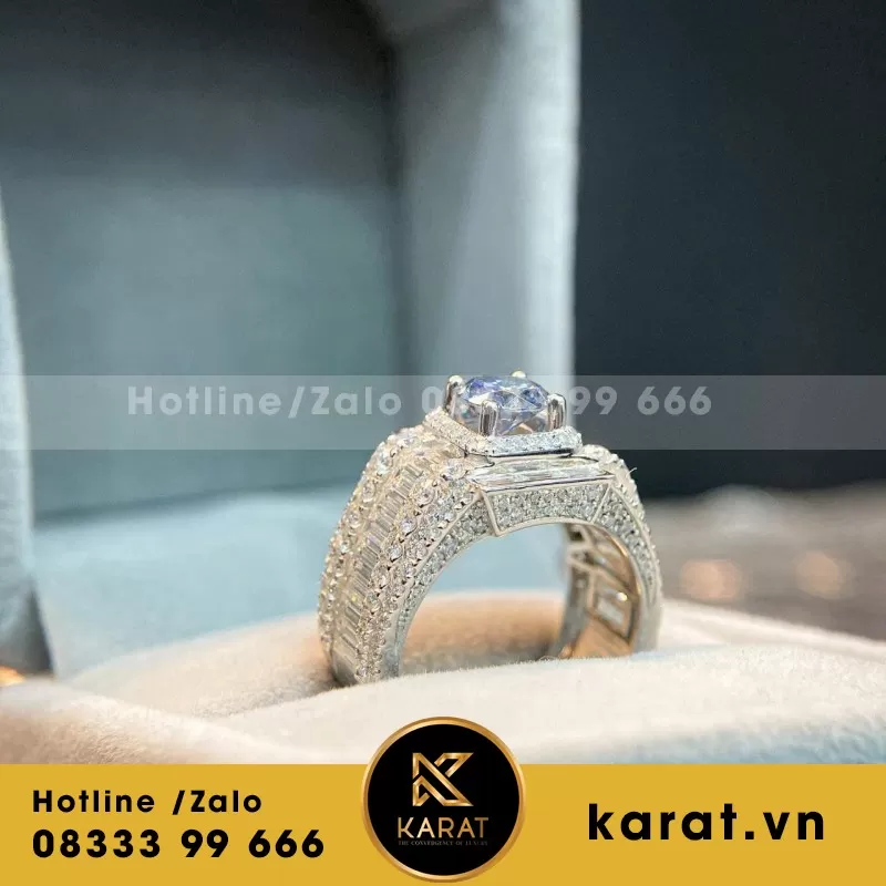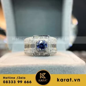 Nhẫn Nam Vàng Trắng 18k Kim Cương Thiên Nhiên