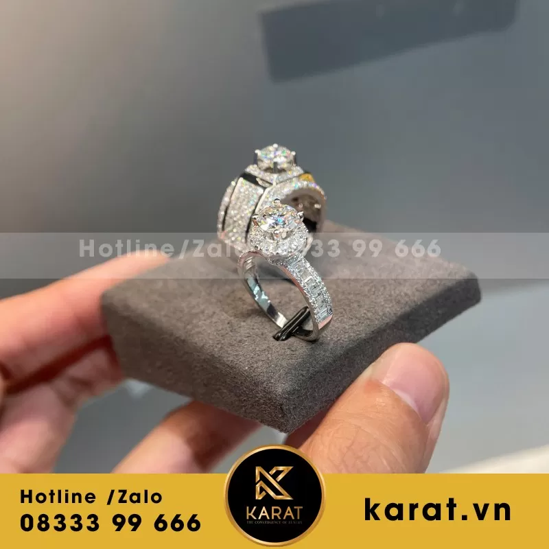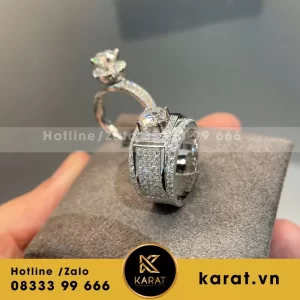 Nhẫn Cartier đầu báo 3D Chế Tác Vàng Trắng