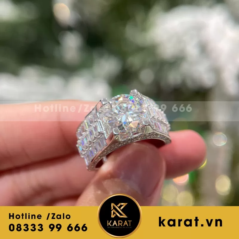 Nhẫn Đinh Cartier Chế tác Vàng Trắng 18k, Kim Cương Thiên Nhiên