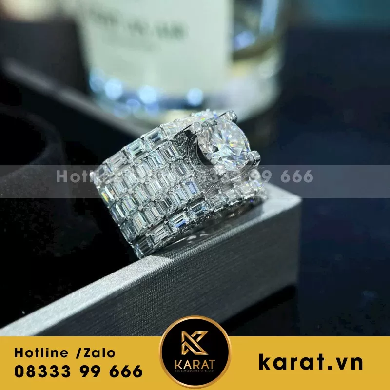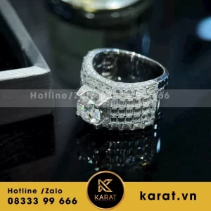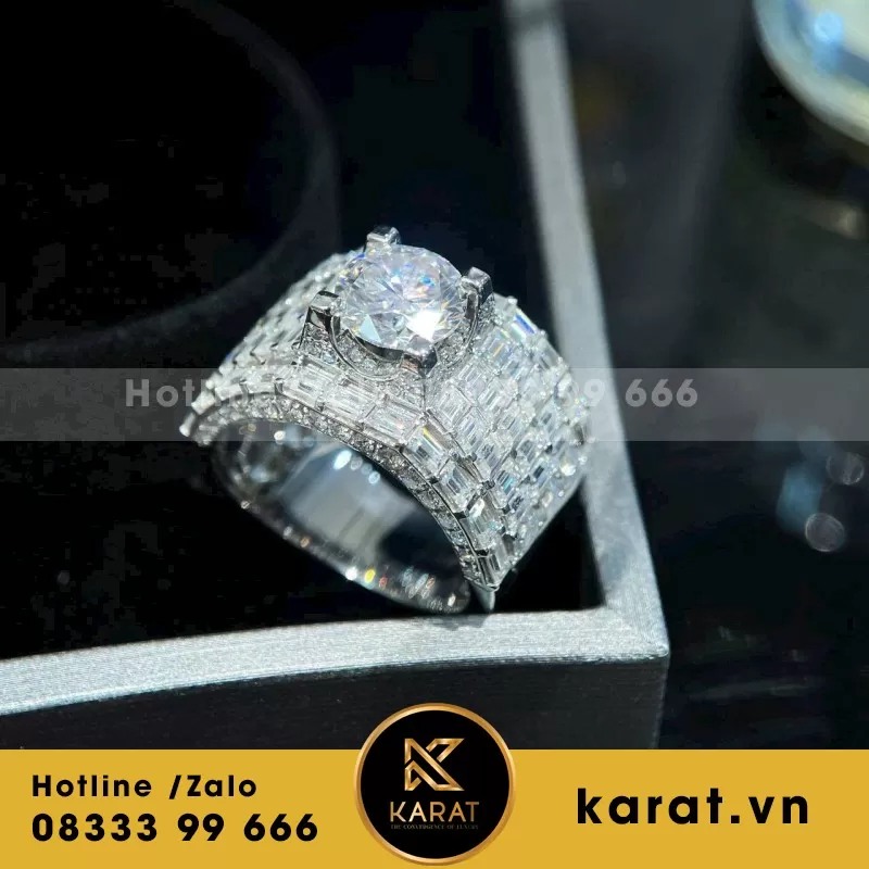 Nhẫn Đinh Cartier Chế tác Vàng Trắng 18k, Kim Cương Thiên Nhiên