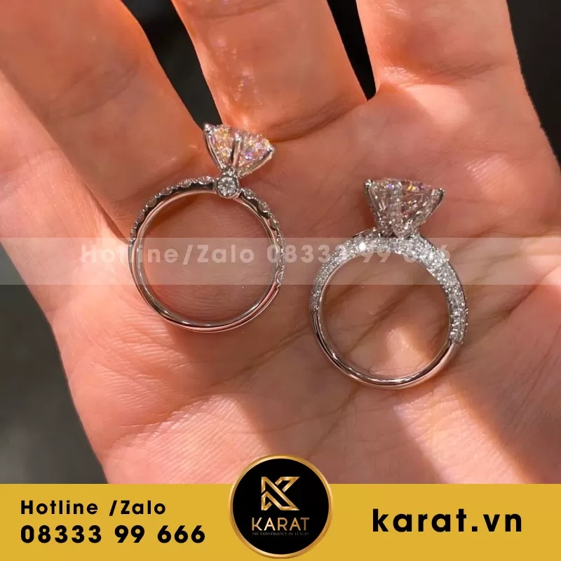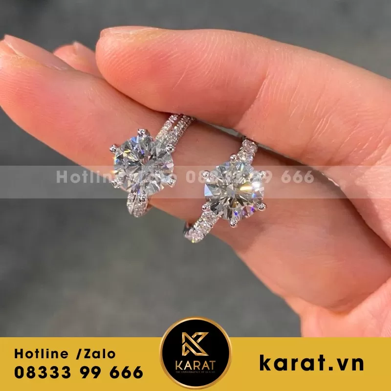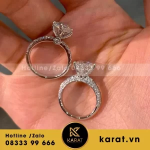 Nhẫn Nữ Thiết Kế Vàng Trắng 18L Kim Cương Thiên Nhiên Viên Chủ 3Ct