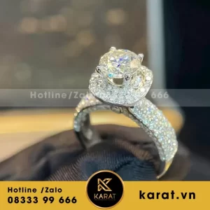 Nhẫn Cartier đầu báo vàng trắng 18k full kim