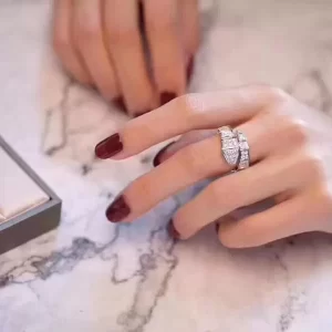 Nhẫn Cartier đầu báo vàng trắng 18k full kim
