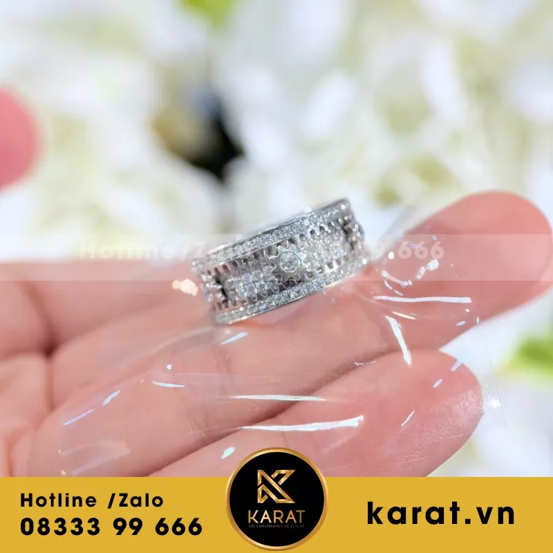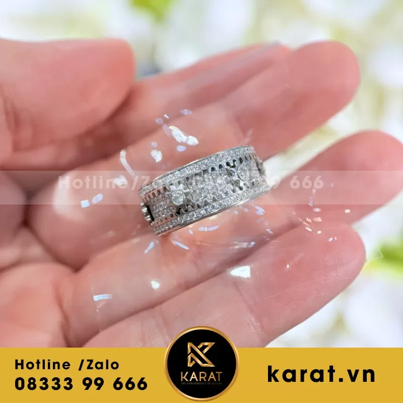 Nhẫn Đinh Cartier Chế tác Vàng Trắng 18k, Kim Cương Thiên Nhiên