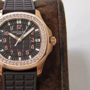 Đồng hồ Patek Philippe Aquanaut 5068R-001 nổi bật nhờ kích thước 34mm vừa vặn cổ tay nữ, tích hợp chức năng date chính xác và bezel tropical đặc trưng. Với lớp hoàn thiện thủ công tinh xảo, mẫu này tôn vinh di sản Thụy Sĩ, cân bằng độ bền chống nước 120m với vẻ đẹp vượt thời gian.