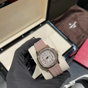 Đồng hồ Patek Philippe Aquanaut 5072R-001 đại diện cho sự tinh xảo Thụy Sĩ, lấy cảm hứng từ lối sống năng động bên bờ biển với chức năng thời gian cơ bản nhưng đầy phong cách. Phiên bản chế tác vàng hồng này nổi bật với kích thước 38mm mỏng nhẹ, phù hợp cho phụ nữ yêu thích sự cân bằng giữa mạnh mẽ và duyên dáng. Sản phẩm khẳng định vị thế của Patek Philippe Aquanaut như lựa chọn cao cấp, nhấn mạnh độ bền, giá trị sưu tầm lâu dài.