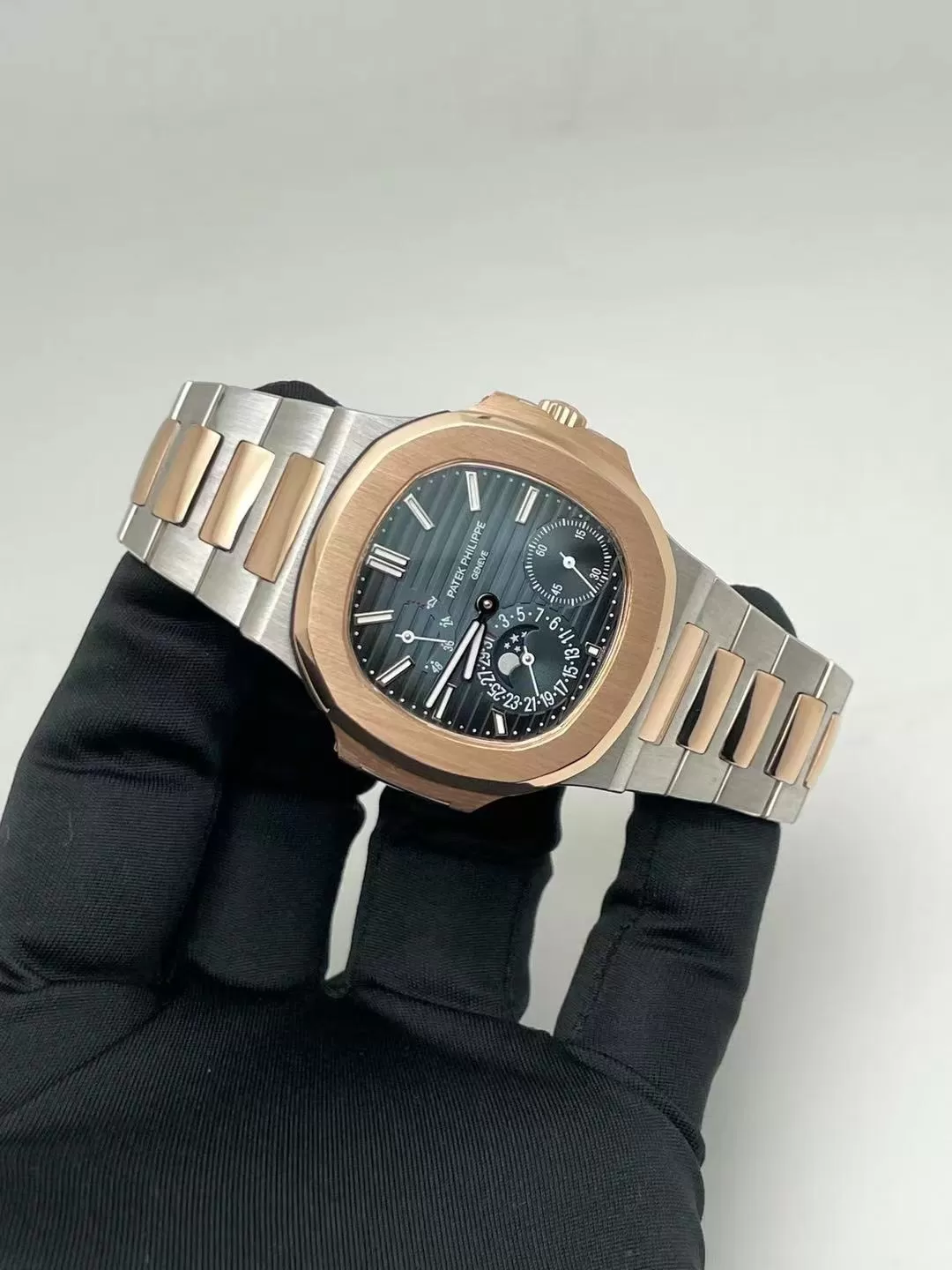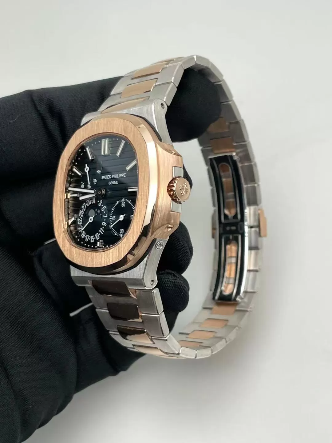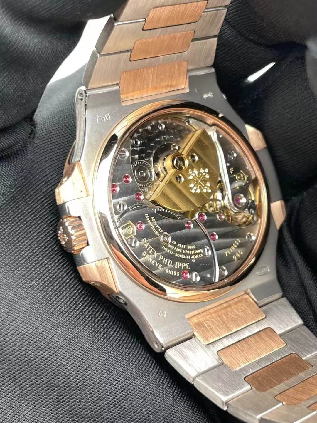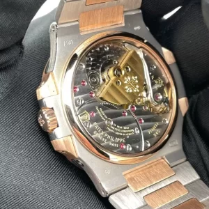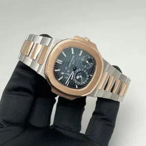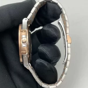 Đồng hồ Patek Philippe rep Nautilus 5980/1AR gây ấn tượng với sự kết hợp tinh tế giữa thép không gỉ, vàng hồng, cùng mặt số chronograph đầy mạnh mẽ và sang trọng.