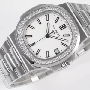 Đồng hồ Patek Philippe Super Fake Nautilus 7018/1A thuộc dòng Nautilus dành cho nữ, nổi bật với white gold diamonds óng ánh và thiết kế cushion case biểu tượng. Ra mắt như sự kế thừa di sản Gerald Genta, sản phẩm mang đến sự cân bằng hoàn hảo giữa độ bền hàng ngày, vẻ đẹp lộng lẫy, lý tưởng cho lối sống năng động của phụ nữ hiện đại.