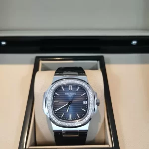 Đồng hồ Patek Philippe Nautilus 5711 ra mắt như kiệt tác của dòng Nautilus, với đường kính 40mm từ vàng trắng 18K nguyên khối. Thiết kế octagonal bezel lấy cảm hứng từ cửa sổ tàu biển, kết hợp kim cương thiên nhiên trên bezel, mang đến sự cân bằng giữa di sản Thụy Sĩ và phong cách đương đại, lý tưởng cho sưu tầm hoặc đeo hàng ngày.