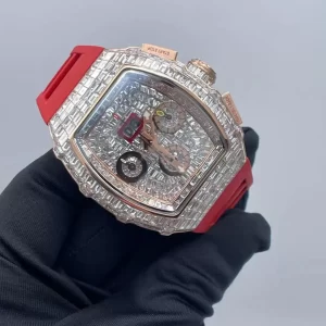 Mặt số sapphire chống xước hé lộ chi tiết chronograph, lịch ngày và tháng. Đây cũng là phiên bản Đồng Hồ Richard Mille Super Fake đạt độ hoàn thiện gần như tuyệt đối, khó phân biệt với bản hãng.