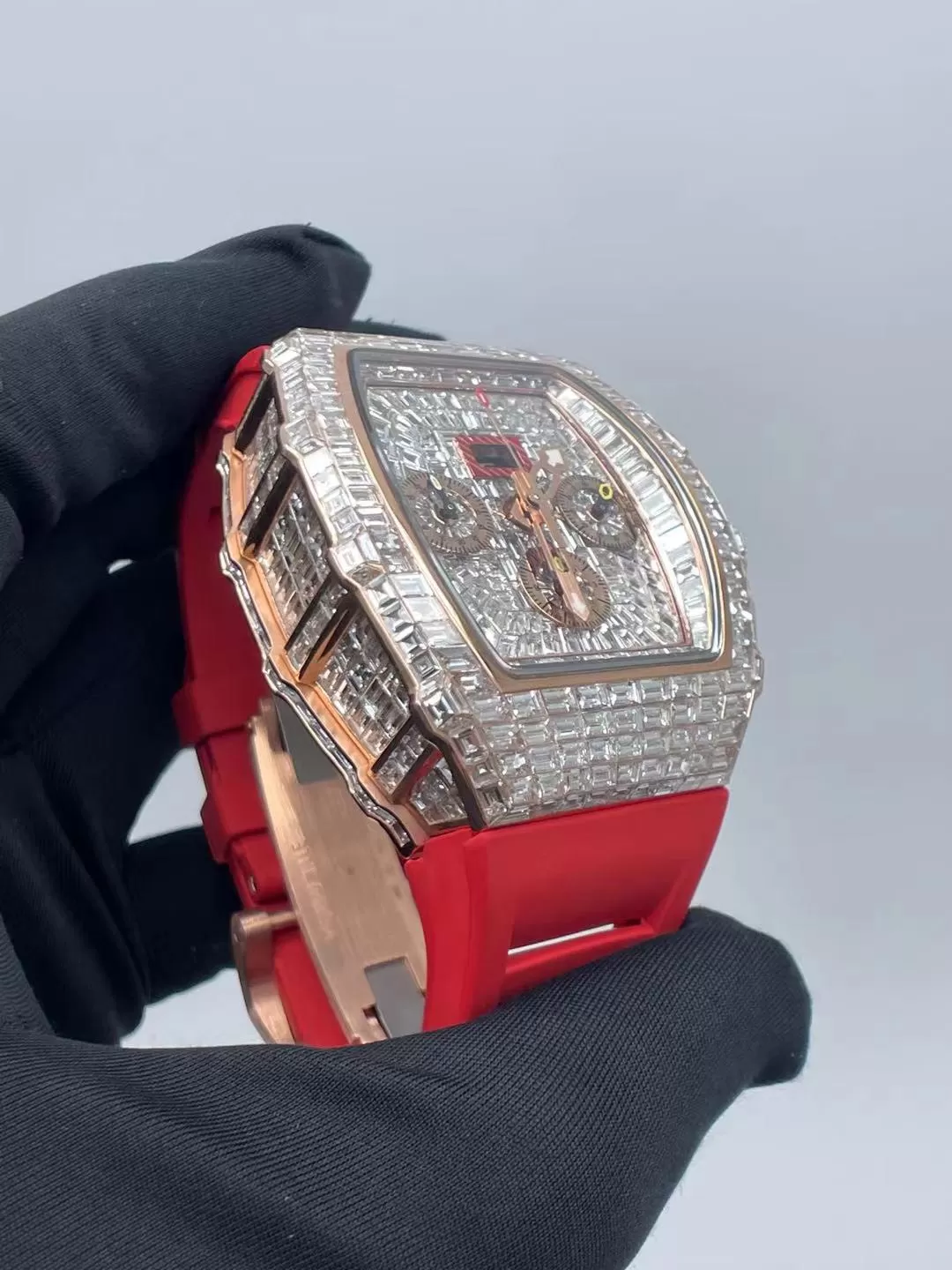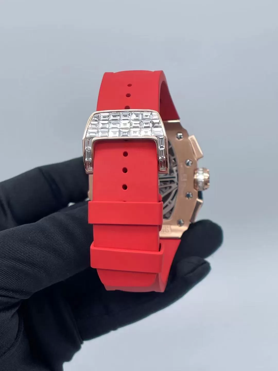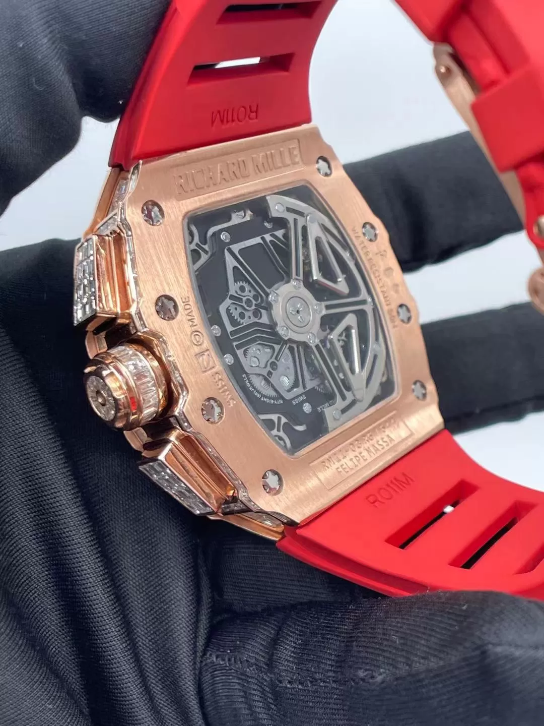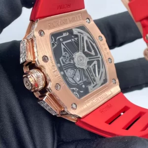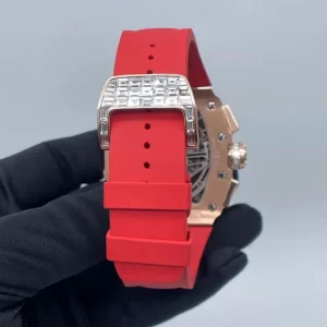 Dây cao su thiên nhiên mềm mại được phối cùng khóa vàng 18k đính kim cương, mang lại cảm giác đeo chắc chắn và thoải mái. Sự kết hợp giữa vật liệu hiện đại và kim loại quý giúp RM11-03 vừa mang phong thái thể thao năng động, vừa toát lên sự sang trọng vượt thời gian.