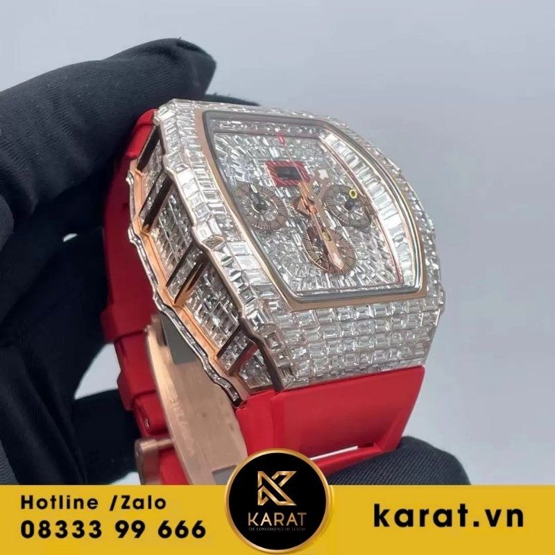 Đồng hồ Richard Mille RM11-03 RG là biểu tượng của đẳng cấp và sự xa hoa, mang đến vẻ đẹp hoàn mỹ giữa kỹ thuật chế tác và nghệ thuật thẩm mỹ. Phiên bản vàng hồng 18k đính kim cương baguette này là minh chứng cho tay nghề thủ công siêu đỉnh và sự tỉ mỉ trong từng chi tiết. Cùng Karat.vn khám phá sức hút không giới hạn của chiếc đồng hồ này.