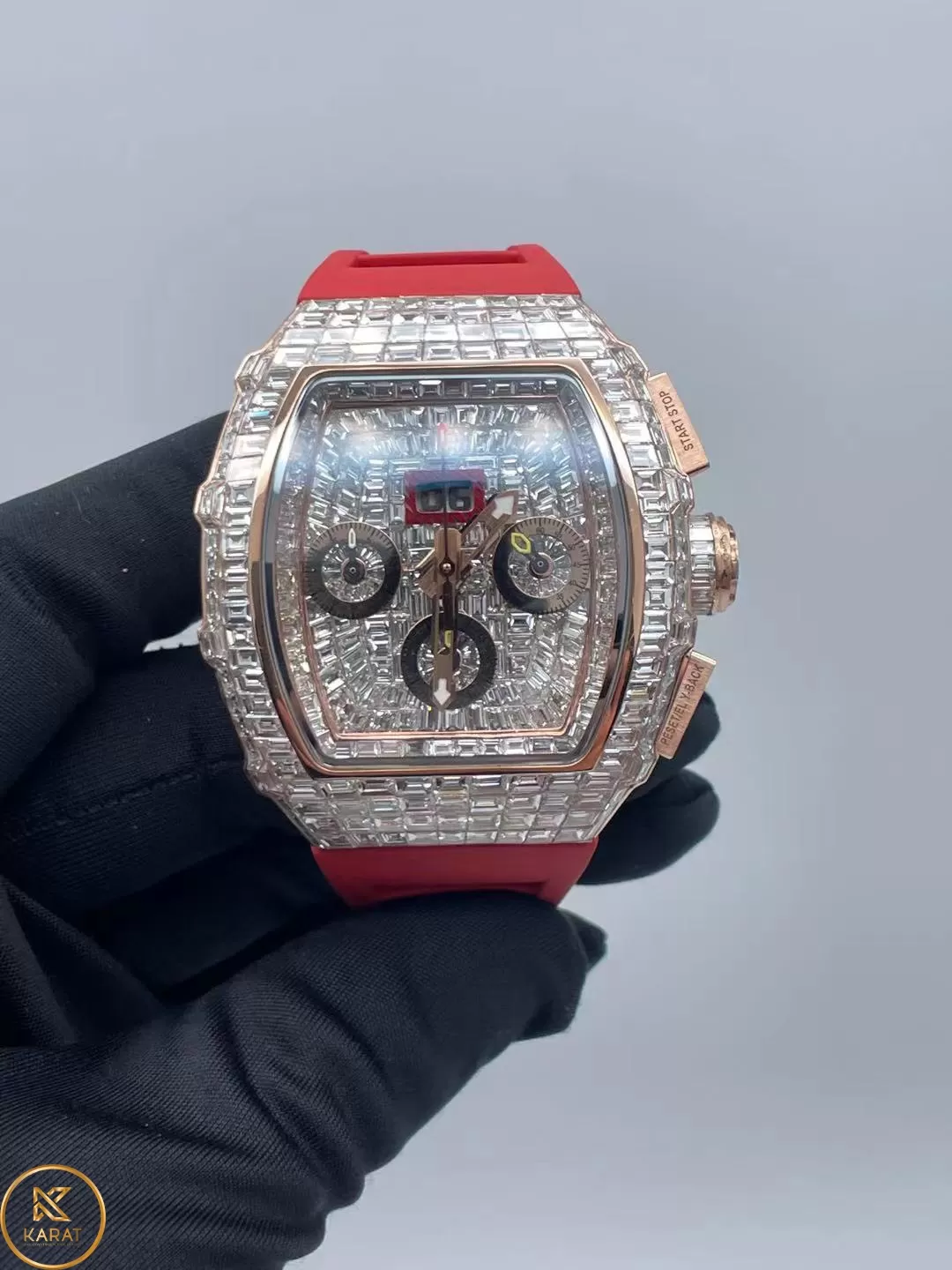 Dây đeo: Cao su cao cấp, khóa vàng 18k đính kim cương