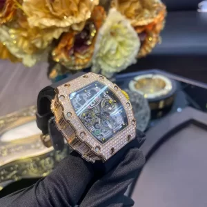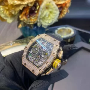 Đồng hồ Richard Mille RM011-03 chế tác vàng đúc và diamonds của chúng tôi được sản xuất trực tiếp tại thủ phủ Hồng Kông, nơi có các nhà máy lớn, hiện đại, có các nghệ nhân lão luyện hàng đầu.