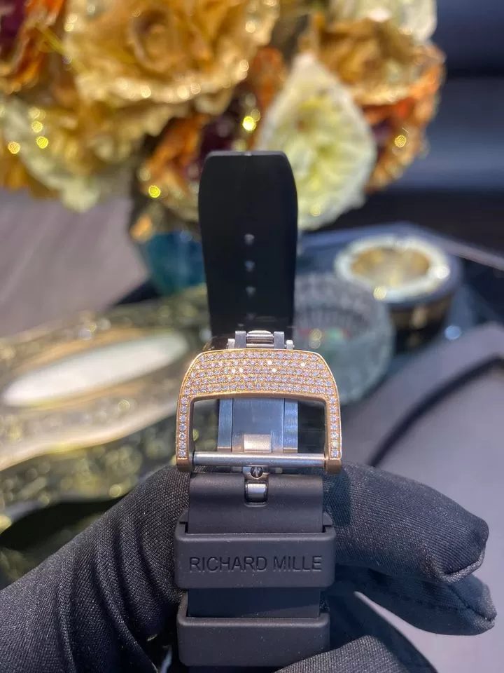 Không cần mất nhiều tiền như thế bạn vẫn có thể sở hữu một cỗ máy tương đương bản hãng. Có vẻ hơi bất ngờ nhưng đó là sự thật! Chiếc đồng hồ Richard Mille RM011-03 chế tác rose gold 18k và diamonds tại Karat hoàn thiện, chuẩn auth đến 99% nhưng giá mềm hơn rất rất nhiều. Nếu đeo nó lên tay cá rằng không ai nhận ra đâu là hàng hãng đâu là hàng chế tác.