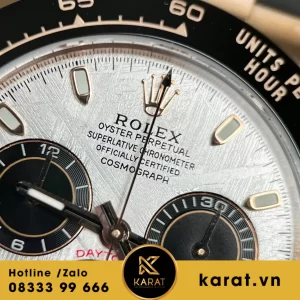 Rolex Cosmograph Daytona 116515 Vàng Hồng Mặt Thiên Thạch là biểu tượng của sự đẳng cấp và thể hiện phong cách cá nhân độc đáo. Với trọng lượng 165 gram và độ bền bỉ theo thời gian, chiếc đồng hồ này là món đồ trang sức không thể thiếu cho những người yêu thích sự độc đáo và sang trọng.
