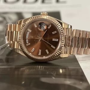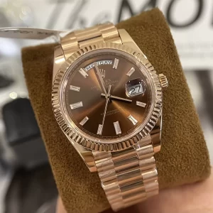 Đồng hồ ROLEX DAY-DATE 40MM CHOCOLATE ROSE GOLD 228235-0003 CHOCOLATE DIAL ra mắt đã đốn tim biết bao tín đồ. Chất liệu sang trọng, ngoại hình lịch lãm giúp chủ nhân tự tin và đẳng cấp thêm bội phần. Nếu bạn đang tìm mẫu đồng hồ nam đẹp, giá hợp túi tiền thì gợi ý này rất đáng để đầu tư.