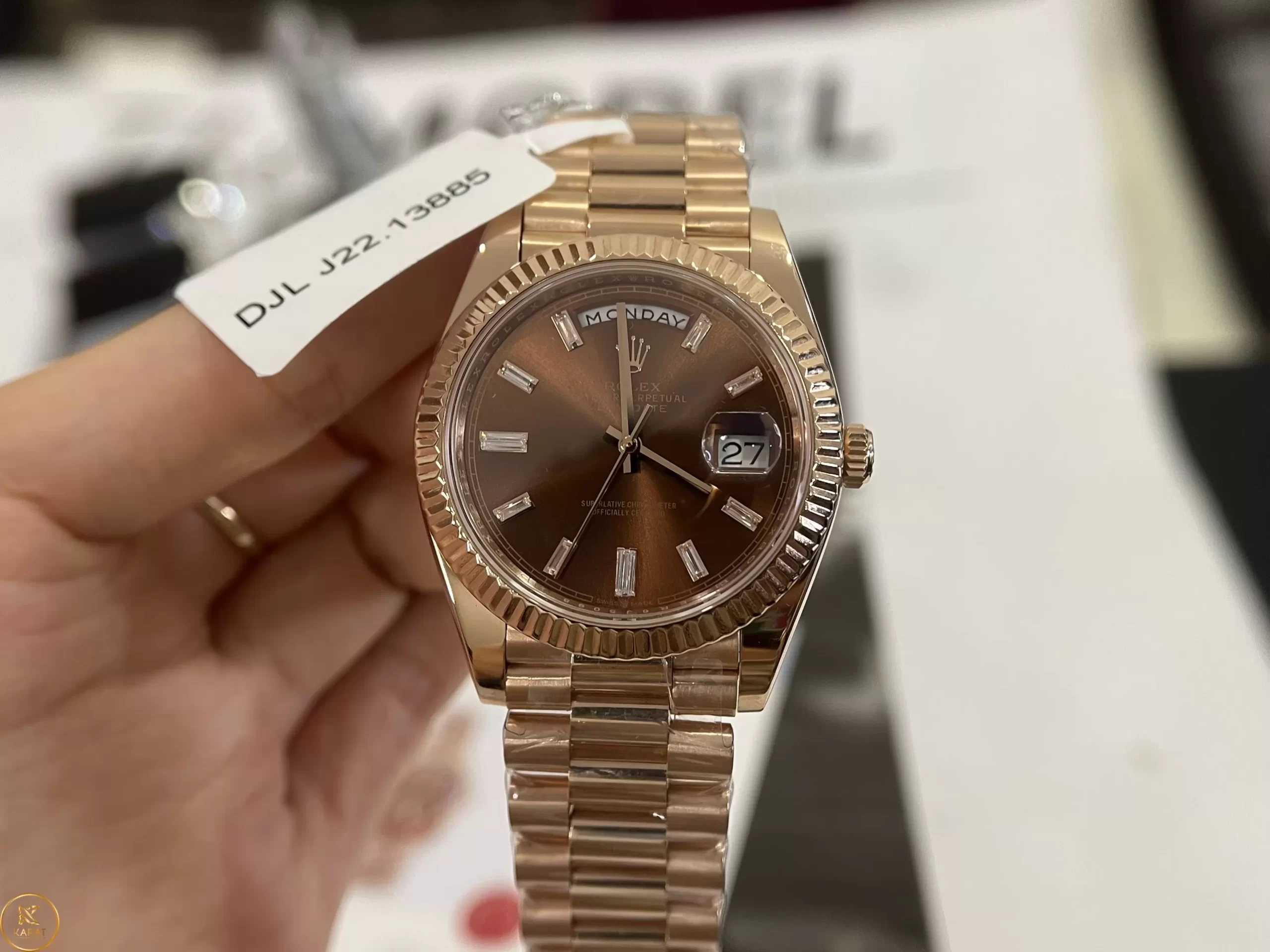 Nếu bạn mua đồng hồ ROLEX DAY-DATE 40MM CHOCOLATE ROSE GOLD 228235-0003 CHOCOLATE DIAL tại Karat sẽ được cam kết như sau: